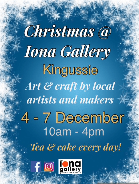 Set up at Iona Gallery Kingussie – Christmas @Iona Gallery 4th-7th December with special Christmas shopping day in Kingussie Sunday 7th December – nice day out!!! Lots of stalls.